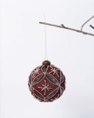 Beautifully detailed with a soft floral motif, this red and grey bauble is finished with delicate silver beading.