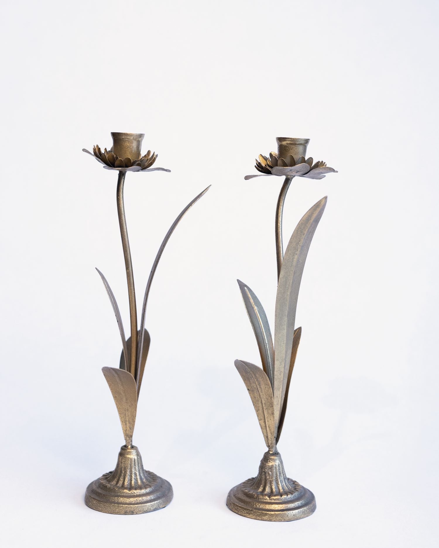 Metal Flower Candlestick in Antiqued Gold