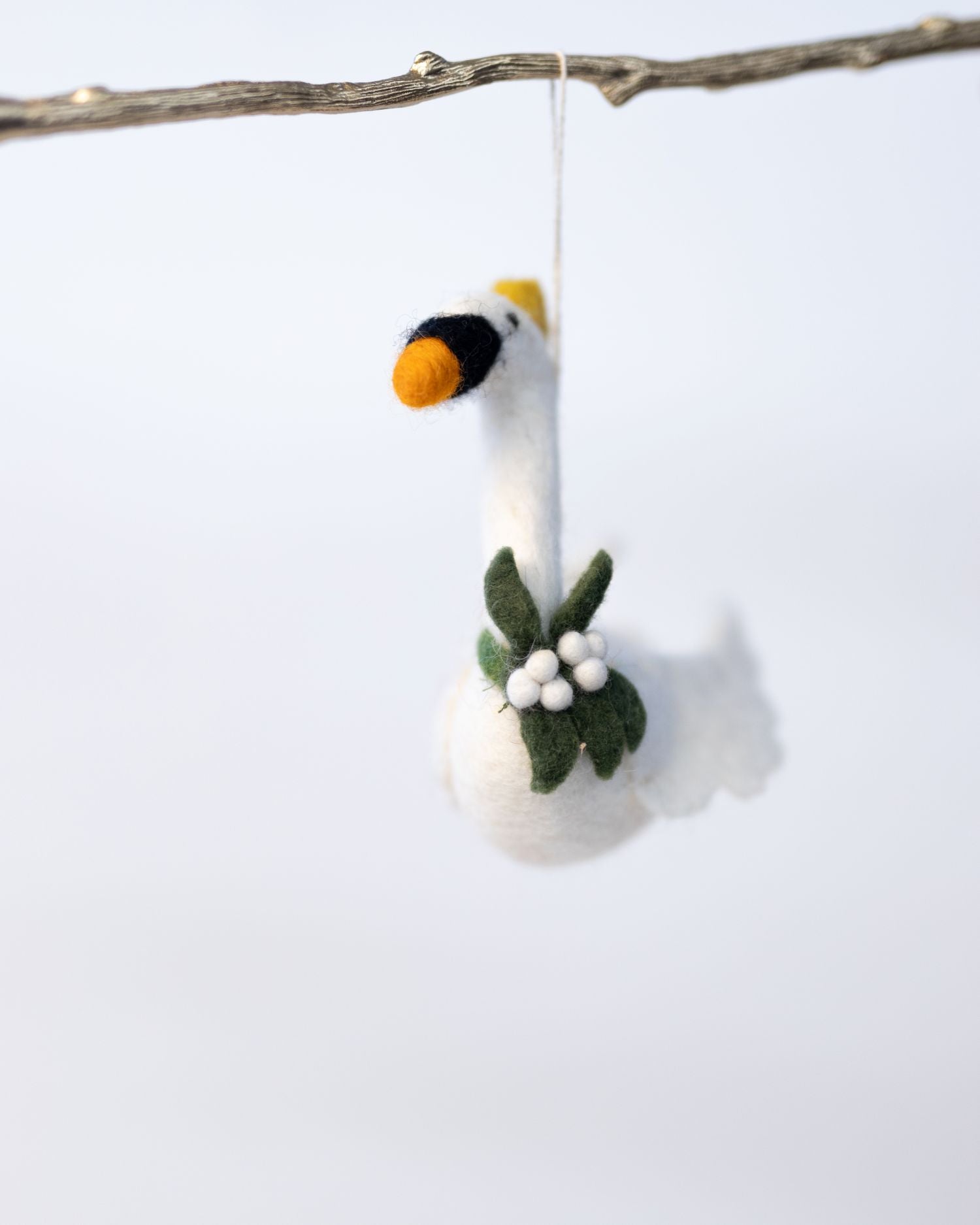 Swimming Swan with Mistletoe Felt Decoration