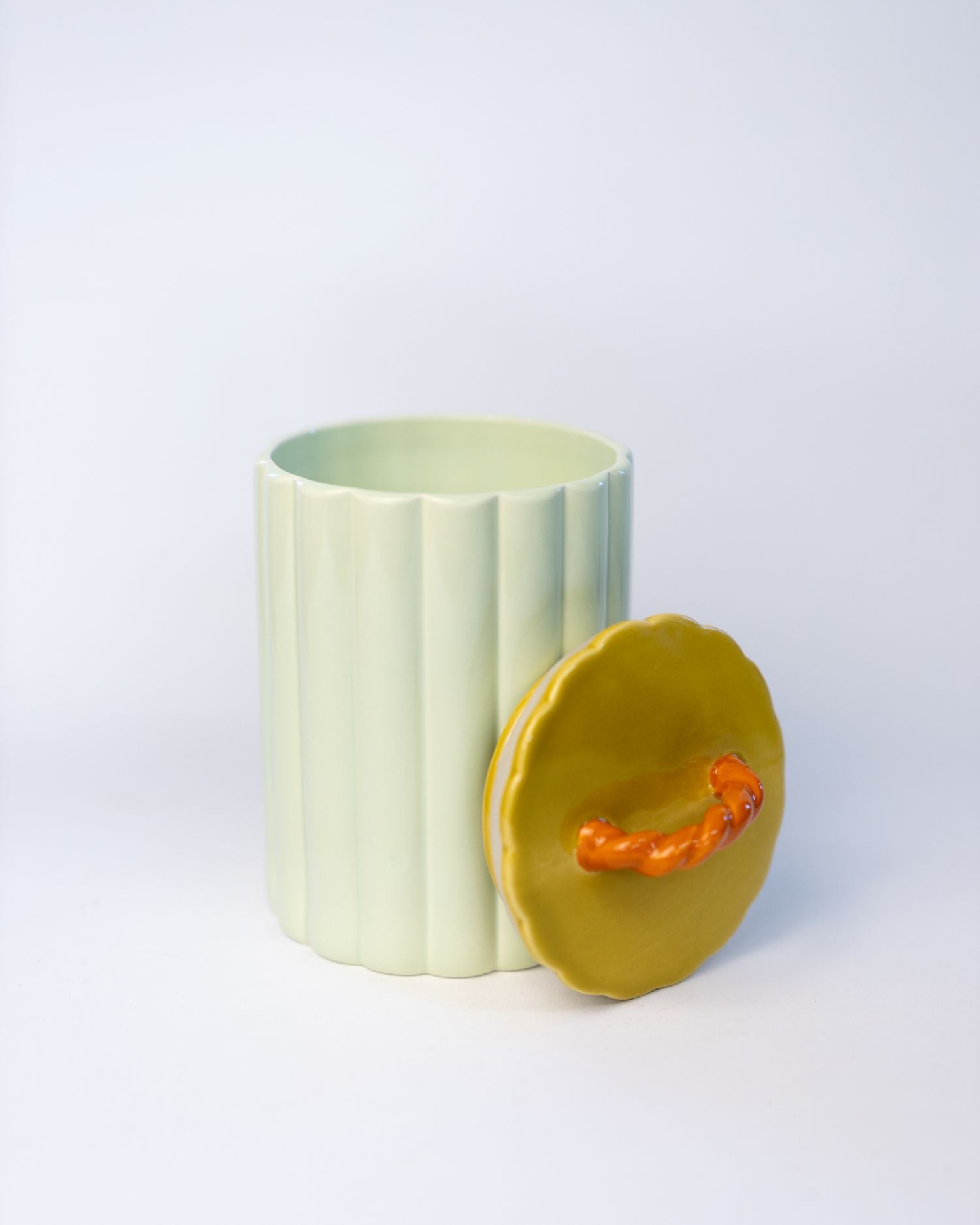 A fun and colourful ceramic pot, perfect for adding a splash of personality to your kitchen. Fitted with a suction-sealed lid to keep dried foods fresh – ideal for coffee, tea, sugar, or snacks.