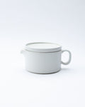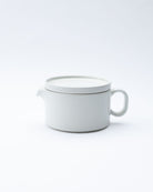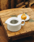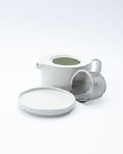 A compact teapot with an integrated strainer, ideal for loose leaf tea. The lid doubles as a small plate, perfect for resting after pouring or serving a biscuit alongside.