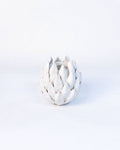 Luxurious, cream-colored glazed ceramic vases that emulate the intricate form of an artichoke.